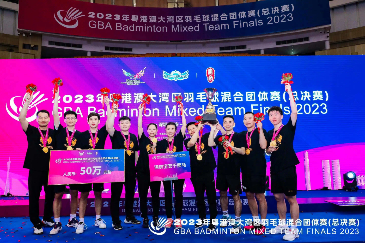11月11日,2023年粵港澳大灣區(qū)羽毛球混合團(tuán)體賽(總決賽)在寶安體育館開拍。共有來自香港、澳門、廣州、深圳、珠海、佛山、東莞、中山、惠州、江門、肇慶等11個(gè)大灣區(qū)城市羽協(xié)組隊(duì)參賽,今年賽事更是擴(kuò)大“朋友圈”,力邀馬來西亞、泰國羽毛球協(xié)會精英選手參賽,16支精英隊(duì)伍148 名高水平選手齊聚深圳。本次比賽由中國羽毛球協(xié)會、廣東省體育局指導(dǎo)、廣東省羽毛球協(xié)會、深圳市文化廣電旅游體育局、寶安區(qū)人民政府共同主辦,寶安區(qū)文化廣電旅游體育局承辦。 深圳寶安千里馬隊(duì)代表寶安區(qū)人民政府參賽,在淘汰賽階段和1/4決賽上分別戰(zhàn)勝了廣東省羽毛球協(xié)會、香港之星羽毛球會,最終以2:0戰(zhàn)勝馬來西亞LCBA隊(duì)問鼎灣區(qū)之巔,奪得2023年粵港澳大灣區(qū)羽毛球混合團(tuán)體賽(總決賽)總冠軍。 比賽現(xiàn)場 比賽現(xiàn)場 總決賽以打造灣區(qū)國際性、區(qū)域性品牌賽事為目標(biāo),全力打造高水平、高質(zhì)量、高品質(zhì)的灣區(qū)運(yùn)動新品牌。今年賽事延續(xù)2022年推出“百萬獎(jiǎng)金”,冠、亞、季軍獎(jiǎng)勵(lì)分別高達(dá)50萬、30萬、10萬獎(jiǎng)勵(lì)。總冠軍得主、深圳寶安千里馬隊(duì)路源表示,本次賽事競賽水平很高,隊(duì)伍在頂住了馬來西亞多輪強(qiáng)勢進(jìn)攻,為深圳、為寶安將冠軍寶座留在深圳。