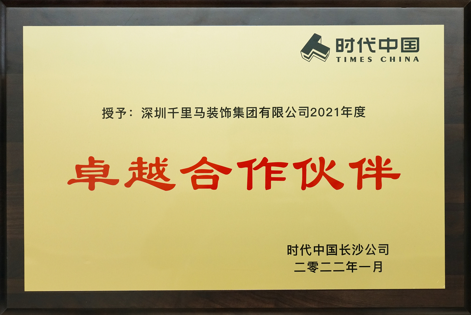 千里馬裝飾集團(tuán)榮獲時(shí)代中國(guó)2021年度“卓越合作伙伴”榮譽(yù)