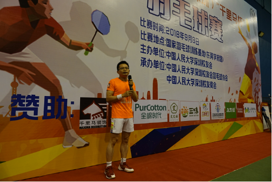 2018年9月8日以“羽樂共享,校友情真”為主題的第四屆人大校友(深圳)“千里馬杯羽毛球賽”在深圳東莞李永波學(xué)校開賽,參加本次聯(lián)誼賽的一共有十三支隊(duì)伍,分別是EMBA隊(duì)、商學(xué)院隊(duì)、福建福磚隊(duì)、88去哪兒隊(duì)、五湖四海隊(duì)、無(wú)影腳隊(duì)、人參隊(duì)、商會(huì)隊(duì)、捉妖隊(duì)、勞人混個(gè)獎(jiǎng)隊(duì)等。